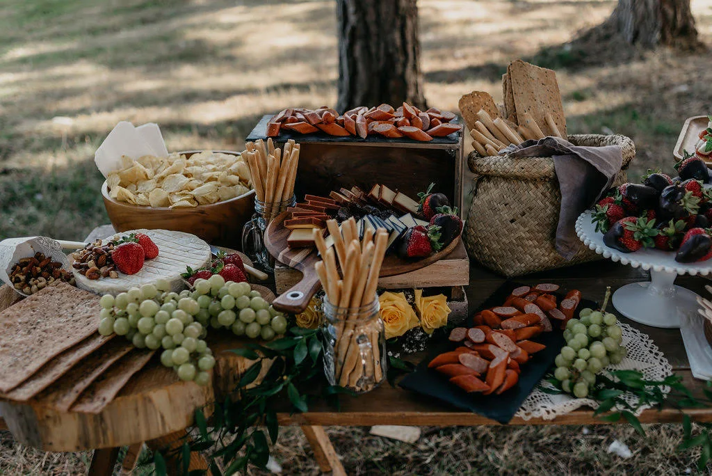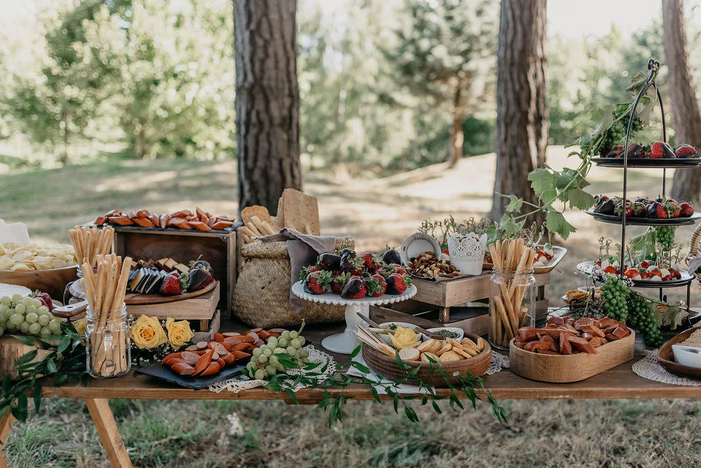 “The woods “providing the perfect backdrop to our first ever grazing table where guests enjoyed drinks games and delicious snacks.